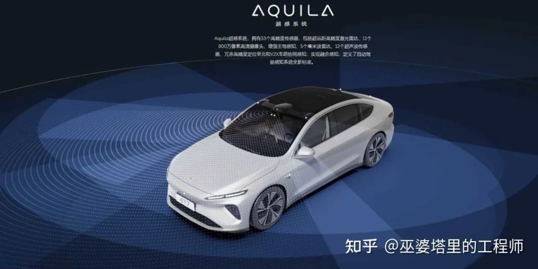2021年1月,蔚來發(fā)布了ET7車型,并將Pilot升級為NAD系統(tǒng)(NIO Autonomous Driving)。與Pilot相比,NAD系統(tǒng)增加了1個前向激光雷達(dá),2個前視車頂攝像頭,2個側(cè)視攝像頭,1個后視攝像頭,此外還配備了高精度地圖定位單元,V2X車路協(xié)同單元,以及駕駛員監(jiān)控系統(tǒng)。NAD的傳感器總數(shù)達(dá)到33個,覆蓋了車身周圍360°的區(qū)域,并且每個區(qū)域至少都有2種傳感器覆蓋。車輛正前方這個重要區(qū)域有激光雷達(dá)、攝像頭、毫米波雷達(dá)3種傳感器覆蓋,保證了冗余性。